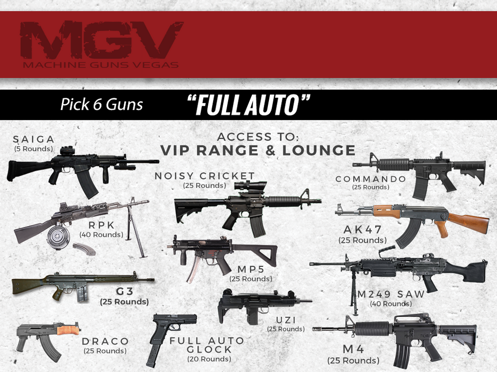 Guests and Concierge: Upon placing an order, please call 800-757-4668 to confirm transportation to Machine Guns Vegas. Open 9:00 a.m. to 5:30 p.m.